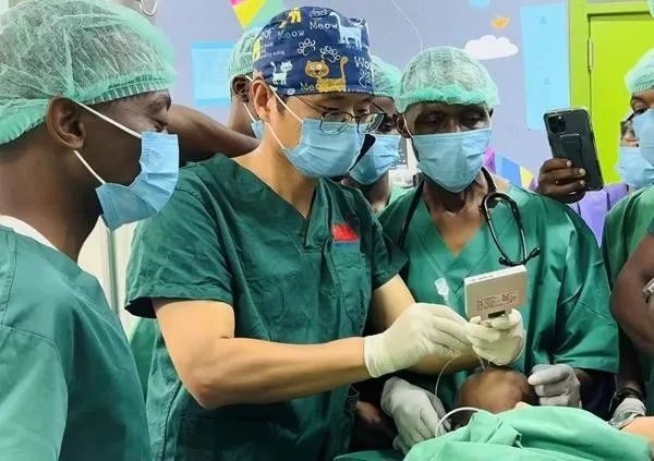 其实早在2024年1月,张军桥刚来坦桑尼亚时,就拟定了初步培训工作规划,但当地医疗设备的匮乏程度,还是超出了他的预期。调研后,他根据实际调整工作重点,不仅引入国际先进的医疗技术,更着力培养当地医疗队伍。因为他知道,真正的援助不能仅靠设备支持,更要“授之以渔”,真正提升当地医疗水平。为解决当地医院“困难气道”(医学术语,是指在临床实践中,由于患者气道解剖结构异常、病理改变或外界因素干扰,面罩通气、气管插管、喉镜检查等常规操作难以顺利进行的一种情况)的难题,张军桥通过所在的山东第二医科大学和山东第二医科大学附属医院,向当地麻醉科捐赠了价值10多万元人民币的可视喉镜,并逐步在当地医院建立“困难气道”插管临床路径……用各种方式指导当地医生去理解、去实践。