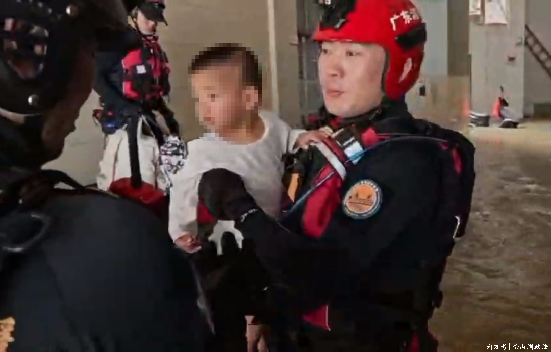 在吴川救援现场,松山湖“蓝鲲”水域救援专业队接到一户人家被困二楼的紧急任务。一楼已被浑浊洪水淹没,七十多岁老人行动不便,一岁多小孩啼哭不止。队员沉着冷静,驾驶救援艇小心翼翼靠近楼房,凭借丰富经验将祖孙二人安全转移。尚未休整,队伍又接到幼儿园疏散任务,队员们迎着湍急水流驾驶救援艇,安抚被困师生情绪,有序组织登船,成功将8名师生转移至安全区域。